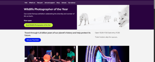 Book exhibition tickets. Explore our galleries, science, news, videos and amazing images. South Kensington tube. London, UK.